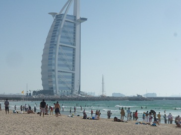 …Остановка на берегу Персидского залива, напротив Бурж аль Араб (Burj Al Arab - по-нашему «Арабской башни») – фешенебельной многоэтажной гостиницы, внешне похожей на парус лодки доу. Это – один из символов Дубая, его часто воспроизводят на сувенирах, майках, открытках.