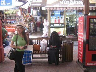 Нет числа небольшим специализированным магазинам. Много продавцов китайцев. Целое море косметики и парфюмерии. Ковры, картины, кувшины, чеканка, кальяны для курения, ожерелья, брошки. Великолепна керамика: блюда, пиалы такие яркие, изящные, гармоничные, что захотелось привезти домой.