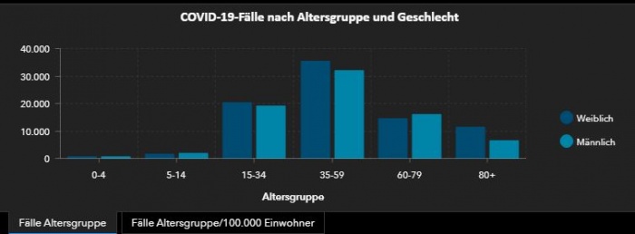 Динамика инфицирования представлена на диаграмме COVID-19-Fälle/Tag nach Erkrankungsdatum