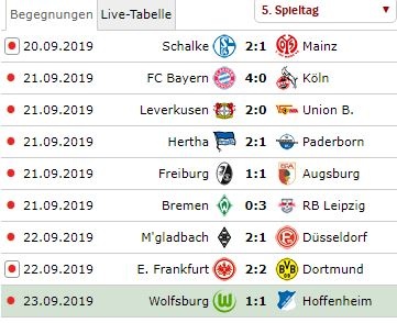 Спорт, хобби, развлечения >> Чемпионат Германии по футболу. Тур пятый