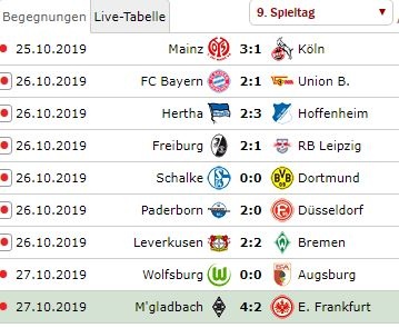 Чемпионат Германии по футболу. Тур девятый