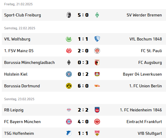Потеря пунктов командой из Саксонии пошла впрок, во-первых, «Фрайбургу», который так разбушевался, что наколотил «Вердеру» аж пять голов, и, во-вторых, «Майнцу», который без особых проблем переиграл «Санкт-Паули». Они оказались в таблице выше «Лейпцига», который теперь идет только шестым.