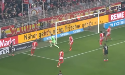 К концу тайма «Бавария» спохватилась: что ж это делается, так можно и проиграть. На 38-й минуте первый же шанс на взятие ворот закончился тем, что счёт стал равным. Этот шанс сотворил и реализовал Луис Диас: он в подкате остановил уходящий за лицевую линию мяч, протолкнул его мимо опешившего защитника Хаберера и с практически нулевого угла вонзил его над вратарём под перекладину. Кто видел этот гол, запомнит его надолго (см. с отметки 2.20).