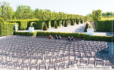 При курфюрстине Софии, ее дочери Софии Шарлотте и Лейбнице обителью муз стал Большой сад Херренхаузена. Оперы, балеты, концерты, маскарады шли среди газонов, клумб, прудов, фонтанов. В парке сновали позолоченные кареты, по каналам – гондолы. В небе сверкали фейерверки. На сцену Садового театра, очерченную стрижеными деревьями, живыми изгородями, позолоченными фигурами, вышли французские актёры – в трагедиях П. Корнеля и Ж. Расина, комедиях П. де Мариво. На музыку Ж.-Б. Люлли поставили «Мещанина во дворянстве» Ж.-Б. Мольера.