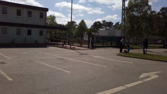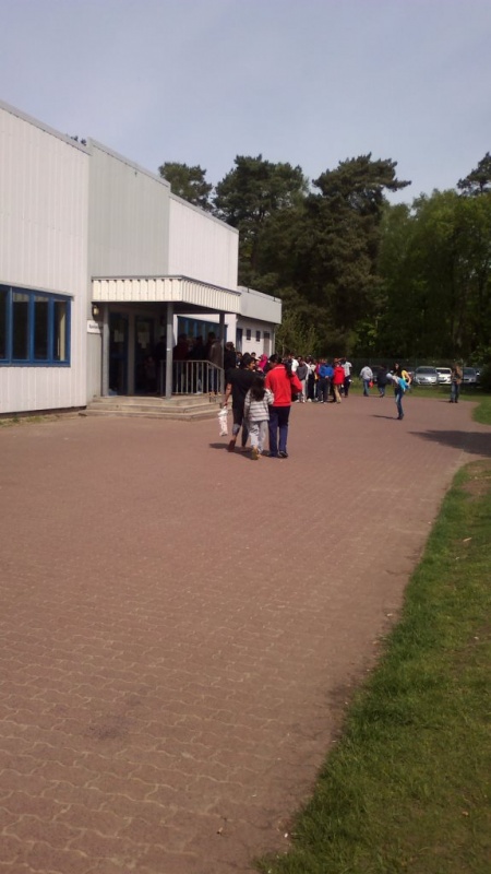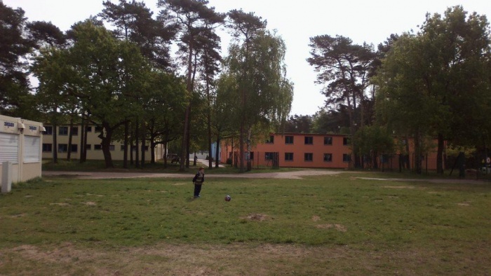 В общем ,приехали мы сюда в понедельник около 21.00. Да, предыстория такая. В четверг 30 апреля Мы с супругой приехали в город Бремен . Там в соответствующим учреждение подали устную заявку на политическое убежище. Сами мы приехали с Украины. В Бремен , потому, что там у меня есть друг. Так  как это был уже вечер а на следующий день тут попросту начались выходные нам сказали явиться в понедельник утром . Прибыв к 8.00 нас приняли, спросили откуда мы и сразу же выдали направление в этот лагерь, объяснив это тем, что Украинцев принимают именно там. Нам выдали проездные билеты и вот мы тут. Вот таким видом нас встретил лагерь ФОТО
