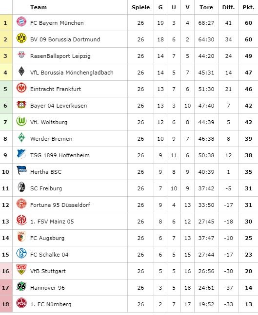 26 тур прошёл давно, поэтому замечу только, что лидеры провели матчи-клоны: «Бавария» снова наколотила шесть голов, на этот раз «Майнцу», а «Боруссия» снова вырвала победу на последних минутах.