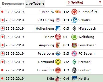 Чемпионат Германии по футболу. Тур шестой