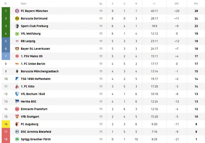 Теперь бундеслига берет паузу, поскольку предстоят завершающие игры отбора в финальную стадию ЧМ в Катаре. 12-й тур (19-21 ноября) откроется баварским дерби – «Аугсбург» - «Бавария».