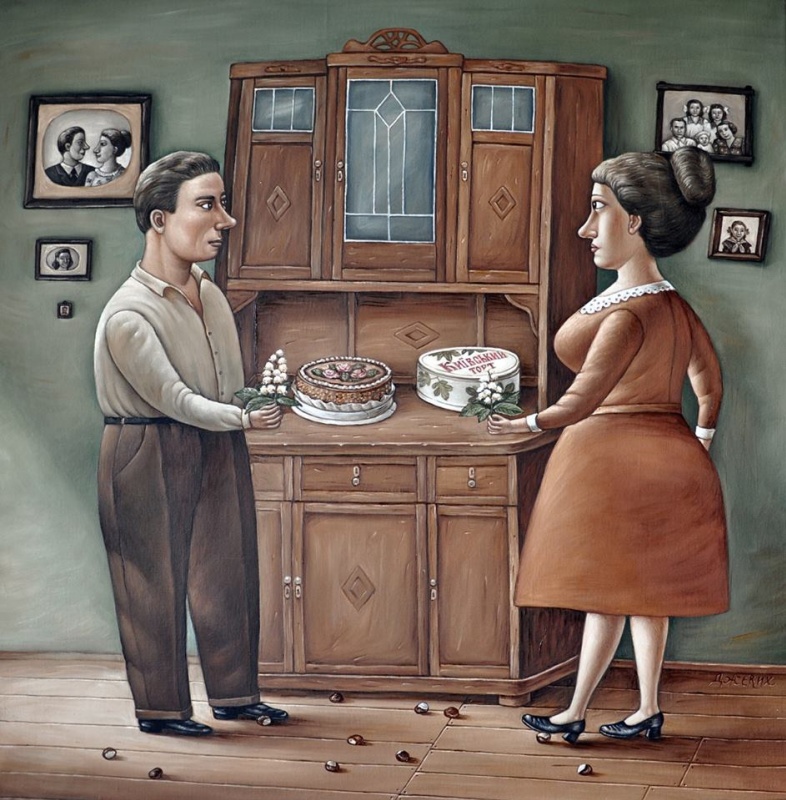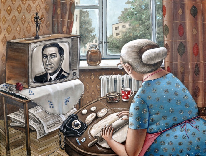 Юмор юмором, а все-таки Не без маленькой такой грустинки. А у кого, скажите, её нет? «Там, в СССР, было мое детство, там были все живы, мне было так хорошо с ними… Вот и рисую, вспоминаю, всё просто», — так рассказывает Анжела Джерих о «советской» серии.
