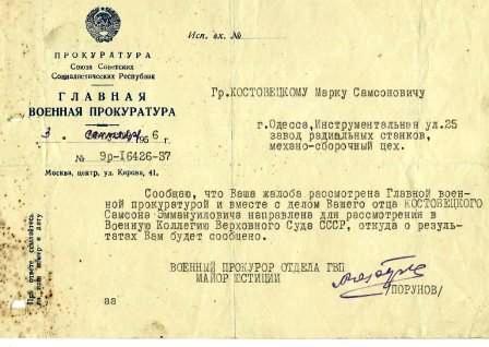 Ответ из Главной военной прокуратуры (фото 6) датирован 3 сентября 1956 года,