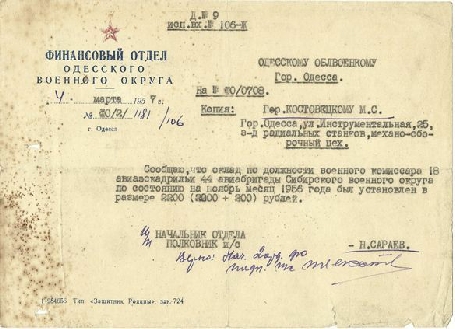 Ответ из финотдела Одесского военного округа  (фото 8).