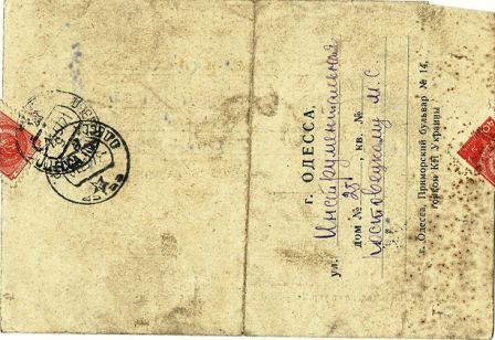 Заведовала нашей училищной библиотекой Оксана Андреевна  (фамилию забыл) – старая  большевичка, женщина необычайно интеллигентная. Территория, на которой находилось училище до войны, называлось Интергородок. Здесь проживали дети, вывезенные в 1937-м году  из франкистской Испании. И в те года Оксана Андреевна уже работала в этом городке.  Перед немецкой оккупацией она в одиночку закопала всю библиотеку, а после освобождения выкопала и работала в дальнейшем заведующей спасённой библиотеки. Оксана Андреевна  всю жизнь собирала любую информацию о героическом прошлом Одессы, и в один прекрасный день я рассказал ей  о фотографии. Как у неё загорелись  глаза!  Конечно, я выполнил её просьбу, принёс фотографию в училище,  сделал  с неё копию. И через три-четыре недели...