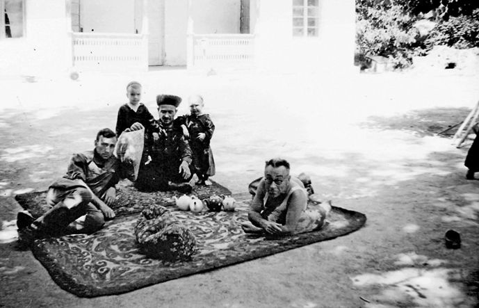 Мы в рыбацкой одежде, конечно, постеснялись заходить в дом, расположились на кошме под чинаром, тем более, что четвёртый член команды, Дик, никак не мог быть приглашён в жилое помещение. Этим, конечно же, мы снискали ещё большее уважение многочисленных соседей, которые собрались посмотреть на живого артиста, чьё имя постоянно слышат по радио.