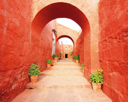 Из Наски автобус целую ночь едет до Арекипы (Arequipa) – вероятно, самого красивого колониального городка Южной Америки. Белокаменные дома, вымощенные булыжником улочки, церкви с интерьерами в стиле «андского барокко» меняют ощущение времени. Особая достопримечательность – построенный в конце ХVI в. монастырь св. Каталины с множеством внутренних двориков, садами и прекрасно сохранившимися фресками. Арекипа находится на высоте 2500 м, и в ней рекомендуется провести пару дней, чтобы привыкнуть к высокогорью, поскольку до следующего пункта – каньона Колка – надо добираться через перевал, чуть недотягивающий до 5000 м.