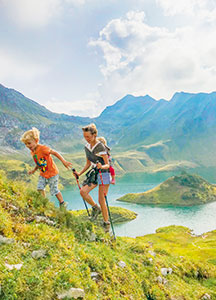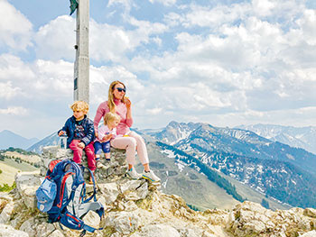 Уже прошло больше года после начала пандемии. Когда меня отправили на Kurzarbeit, мы почти каждые выходные выбирались в баварские Альпы. Никогда еще мы так много и часто не бродили по горам, как во время пандемии. С закрытыми границами, карантинами, непонятной ситуацией с отменяемыми самолетами каникулы в горах могут стать наилучшим  времяпрепровождением. А с двумя маленькими детьми всё это превращается  в настоящий квест, но настроение после очередной покорённой вершины отличное! Зачастую нам обоим приходится нести и детей, и рюкзак, что опять же превращается в интересную задачу, если вас всего двое, а единиц багажа три! Поэтому иногда случается, что муж несет рюкзак и одного ребенка на плечах или обоих детей сразу (за спиной и на плечах). На треке я обычно несу дочку (2,5 года) в мягкой  тканевой переноске. Сын (4,5 года) какое-то время может топать сам, но так как мы не выбираем легкие маршруты, пригодные для детей, то понятное дело, он не может полностью пройти взрослый маршрут и часть пути его несёт муж.  Благодаря этим походам мы оба находимся в хорошей физической форме.