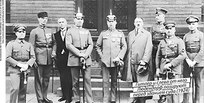 24 февраля 1924 г. в Мюнхенском пехотном офицерском училище начался суд по обвинению в государственной измене. Здание обнесено колючей проволокой, выставлена охрана. На скамье подсудимых десять человек; среди них Гитлер, генерал Людендорф, Эрнст Рём, Вильгельм Фрик. Свидетели: Густав фон Кар, Отто фон Лоссов, Ханс фон Зайсер. В зале суда яблоку негде упасть, в ложе прессы – около 100 репортеров.