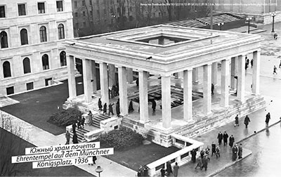 Почти 100 лет год назад здесь, рядом с «Домом Гитлера» – штаб-квартирой центрального отделения нацистской партии, было создано одно из самых почитаемых мест национал-социалистов. На этих блоках, поставленных на «вечные времена»,возвели «Храмы почета» (Ehrentempel). В них покоились жертвы неудавшегося «Пивного путча» 1923 г. По стойке смирно стоял почетный караул. Прохожие и велосипедисты, проходя или проезжая мимо, отдавали честь.