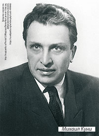 Многое из подобного я прежде видел в исполнении знаменитейшего Вольфа Мессинга, о котором в народе ходили легенды. Так вот, Куни, на мой взгляд, был, безусловно, ярче Мессинга, на которого порой было просто страшно смотреть: лицо, густо изрезанное морщинами и покрытое испариной, то и дело искажала какая-то судорога – невольно хотелось отвести взгляд. Нет, Михаил Абрамович всё это же самое (а многое – и совсем новое, неимоверно сложное) делал как-то легко, без наигранного «трагизма», иногда, наоборот, – с лёгкой улыбкой. Когда, например, производил в уме сложнейшие подсчёты, смотрел в зал своими большими синими-синими глазами очень ясно, как бы успокаивая зрителей, которые за него, естественно, переживали: мол, ничего, всё уже подсчитал, абсолютно точно, не волнуйтесь...