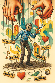 «Должен» – это язык принуждения, страха и контроля. Язык взрослого человека – «выбираю», «интересуюсь», «беру ответственность». Это не отрицание важного или глубокого. Это признание, что путь к подлинному знанию, переживанию и исполнению действительно важных обязательств лежит не через навязанное «обязательно», а через личный, иногда ошибочный, но всегда свой выбор.
